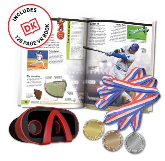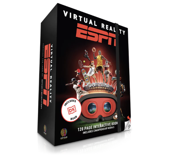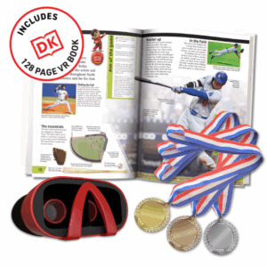 Dive into the world of sports in immersive virtual reality! From home runs and slam dunks to blade running and sumo wrestling, you’ve never experienced sports like this before. Go behind the scenes at ESPN and learn sports from the experts. This deluxe gift set includes an illustrated 128-page interactive DK book and is packed with 20+ VR experiences! Step into the goal crease in an ice hockey game, hit the halfpipe on a skateboard, and even rip down a trail on a mountain bike! Includes a set of championship medals and VR goggles! Get a group of your friends together and have a blast with this sports themed Virtual Reality!