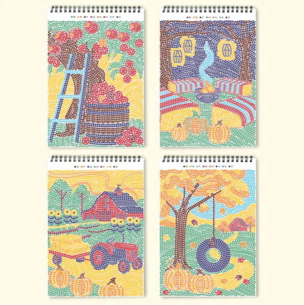 Bring calm into your day with this guided art meditation pad designed to ease stress through simple, rhythmic motion. The Dot-by-Letter FlowArt Pad turns downtime into a soothing art experience. Each page uses a color key for dotting, so you can focus on the gentle flow of creating while bright patterns emerge. Compact and portable, it’s an easy way to relax before bed, take a mindful break at work, or enjoy stress-free creative time anywhere. Compact and portable, this pad is perfect for calming your mind on-the-go, unwinding before bed, or taking a work or study break to de-stress. Bring some calm into your life this holiday season with this relaxing coloring art.  Stop the scrolling and relax with this art pad.  Go in to the fall relaxed and ready for the holidays.