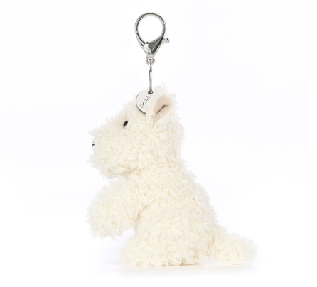 Bobbing about on a silver clasp and chain, Munro Scottie Dog Bag Charm is an all-weather treasure. With wind-blown fur, pink ear detail and a nose for adventure, Munro is ready to go. Clip this pup to your backpack or bag as a most stylish companion.